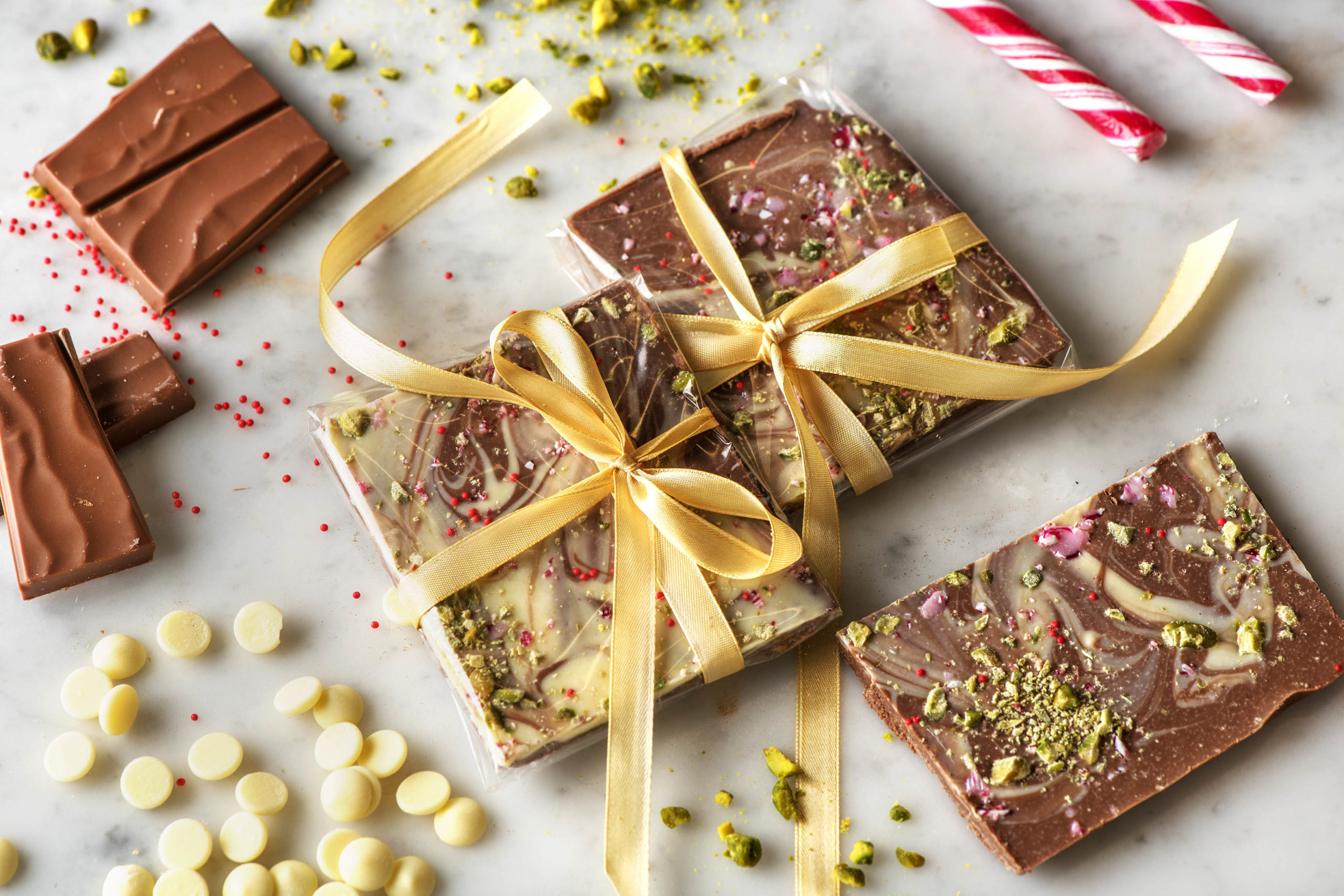Of je het nu maakt om jezelf mee te verwennen, een diner mee af te sluiten of een geliefde mee te verrassen: zelfgemaakt zoet is altijd goed! Deze chocoladereep is een feestje voor de ogen (en de smaakpapillen) en kost weinig (moeite) maar levert héél veel plezier op. 🎉 Maak ‘m extra vrolijk door het te garneren met pistachenoten en snoep 😋.